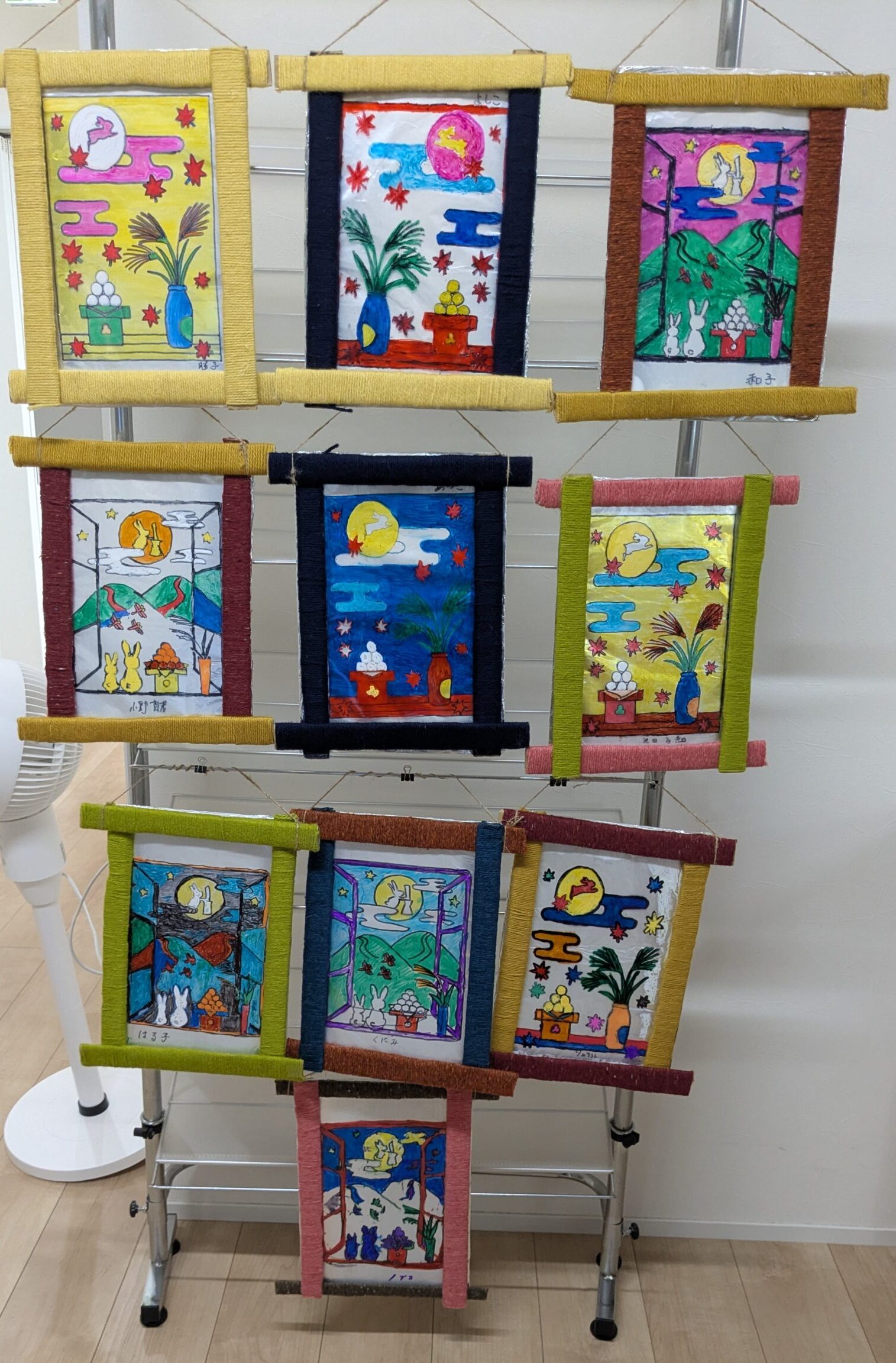 月見団子や月、ウサギなど皆さん思い思いの秋の風景を描きました!